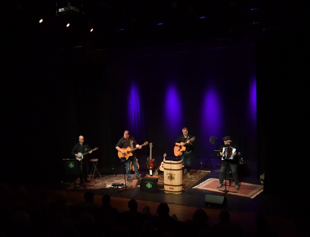 Tot de pauze ging het in een gestaag tempo, maar daarna gingen alle remmen los en werd het een avond met heerlijke folkmuziek en dan vooral de muziek uit Ierland en Schotland. D’irish Folk een band die zich laat inspireren door bands als The Dubliners, the Furey’s, the Kilkenny’s, Tijdens de door hen ontwikkelde voortelling namen ze het publiek mee op een muzikale verhalen reis naar de Iers pubs D’irish Folk is een band weet als geen ander gezelligheid en plezier te brengen, alsof je in een Iers pub beland bent. Het publiek heeft genoten van een geweldig optreden van deze vier mans formatie, die als toegift zongen ”Wat zullen we drinken” (Zeven dagen lang).