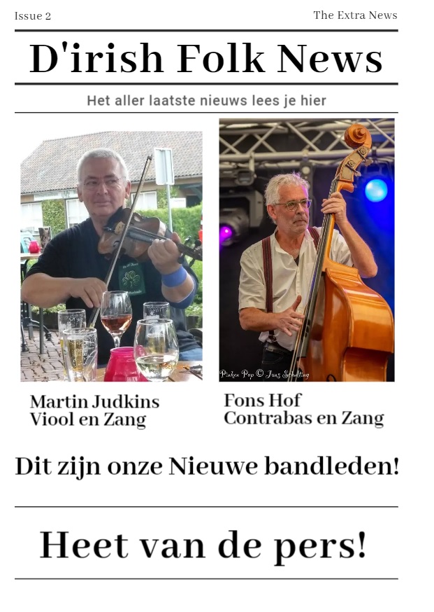 Wij hebben niet een, maar 2 nieuwe bandleden die we aan jullie willen voorstellen. Binnenkort gaan we repeteren met op Contrabas Fons Hof en op viool Martin Judkins. Dit zijn heel ervaren mensen die hun instrumenten heel erg goed bespelen. Tijdens de auditie hebben we al heerlijk met hun kunnen muziek maken en kletsen en wij denken dat deze mannen goed bij ons passen . Wij heten hun dan ook van harte welkom in D’irish Folk en hebben heel veel zin om met hun te gaan spelen.